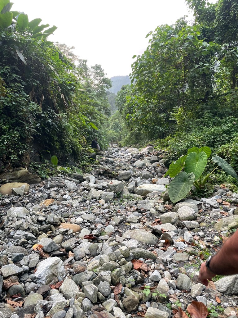 The journey took us across multiple river crossings, each presenting its own set of challenges. The rivers, swollen from recent rains, required careful navigation to avoid slips and falls. The wet, unorganized trekking path added to the difficulty, with muddy patches and slippery rocks making progress slow and strenuous.