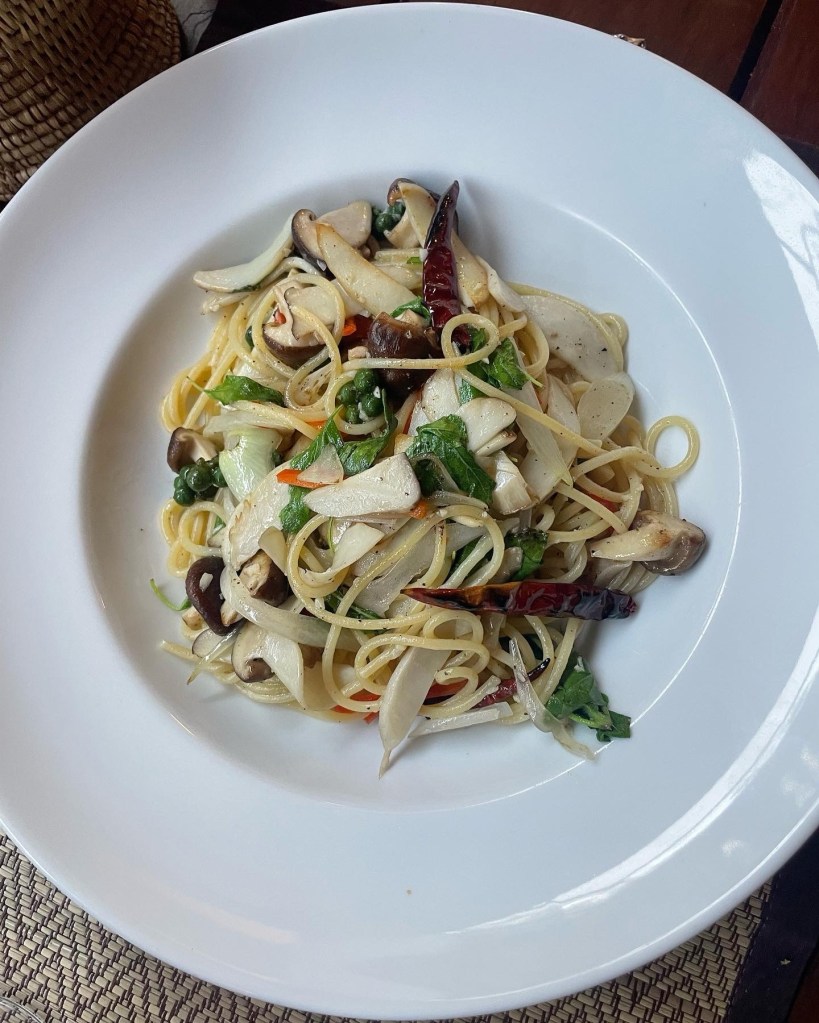 For something different, we opted for the Gluten-Free Thai Style Spaghetti. This dish combined fried onions, mushrooms, garlic, chili, basil, and pepper. While it was enjoyable, it didn’t stand out as much as the other dishes, offering a familiar but not particularly unique flavor profile.
