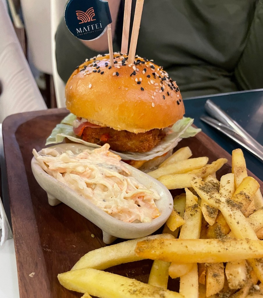 The ambience of Maffei Kitchen is warm and inviting. The interiors are adorned with art and furnishings, creating an atmosphere that transports you to the Mediterranean. Soft lighting, cozy seating, and the aroma of freshly prepared dishes enhance the dining experience, making it perfect for a relaxed meal with family or friends.