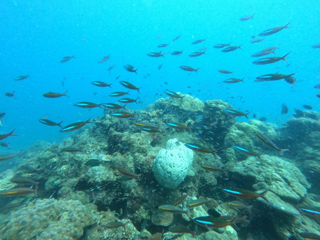 It was a shore dive and recalling my previous training was easier than expected. After recapping the basics, we started our descent hovering around 5-6 meters and then moved around the reef to a depth of 12 meters. It was a good 45 minute refresher dive. Overall I was excited to have overcome all those challenges during my basic open water dives to equalize without pain, maintain neutral buoyancy, and move comfortably underwater.