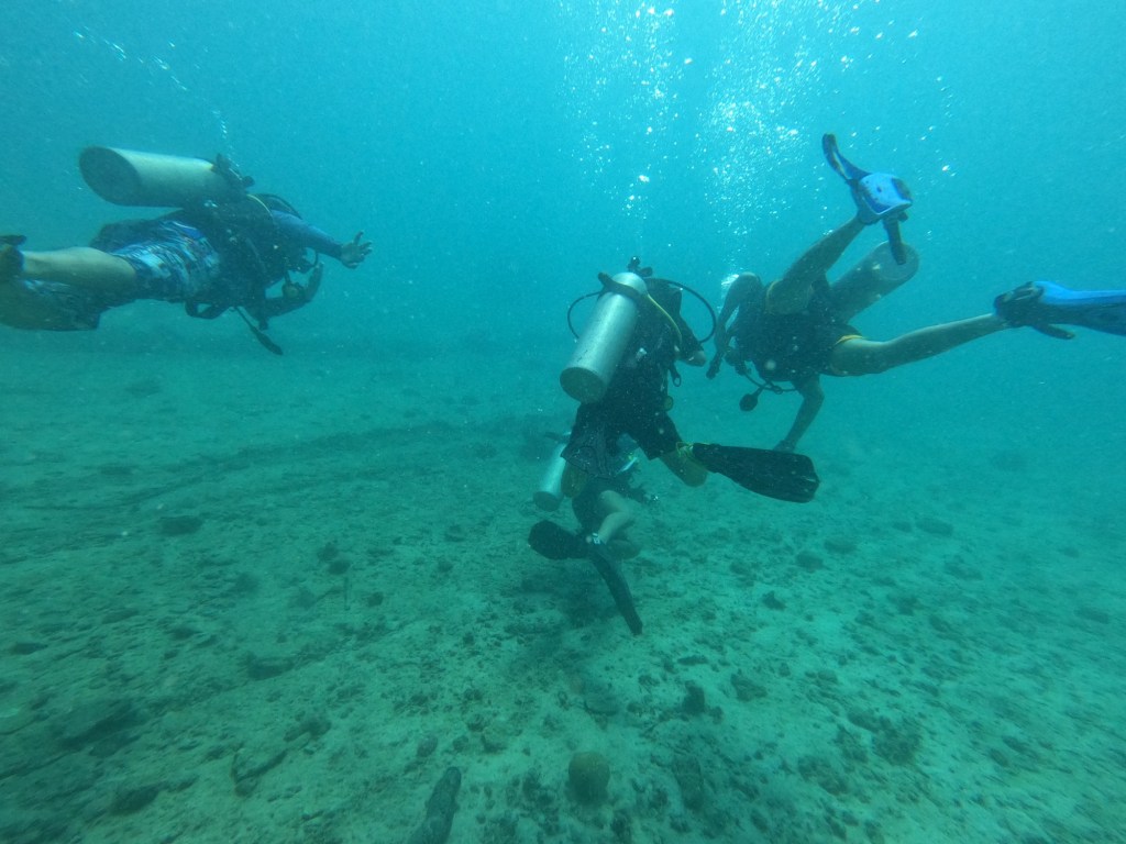 Our first dive was an elective on peak performance buoyancy at the Trivegate dive site. This dive is crucial for mastering buoyancy control, which helps conserve air and energy. Trivegate, with a depth of 10.5 meters and an average visibility of 5 meters, offered a warm surface temperature. This site has rocky formations and we saw some groupers and butterflyfish. We didn’t move around as much as the focus was on our training. We focused on hovering, fin pivots, controlled ascents and descents, somersaults, weight removal, swimming through hoops (legs of a standing diver on the seabed), breath control, and hovering in different positions to enhance buoyancy control and efficiency. We spent 54 minutes at the bottom, honing our skills.