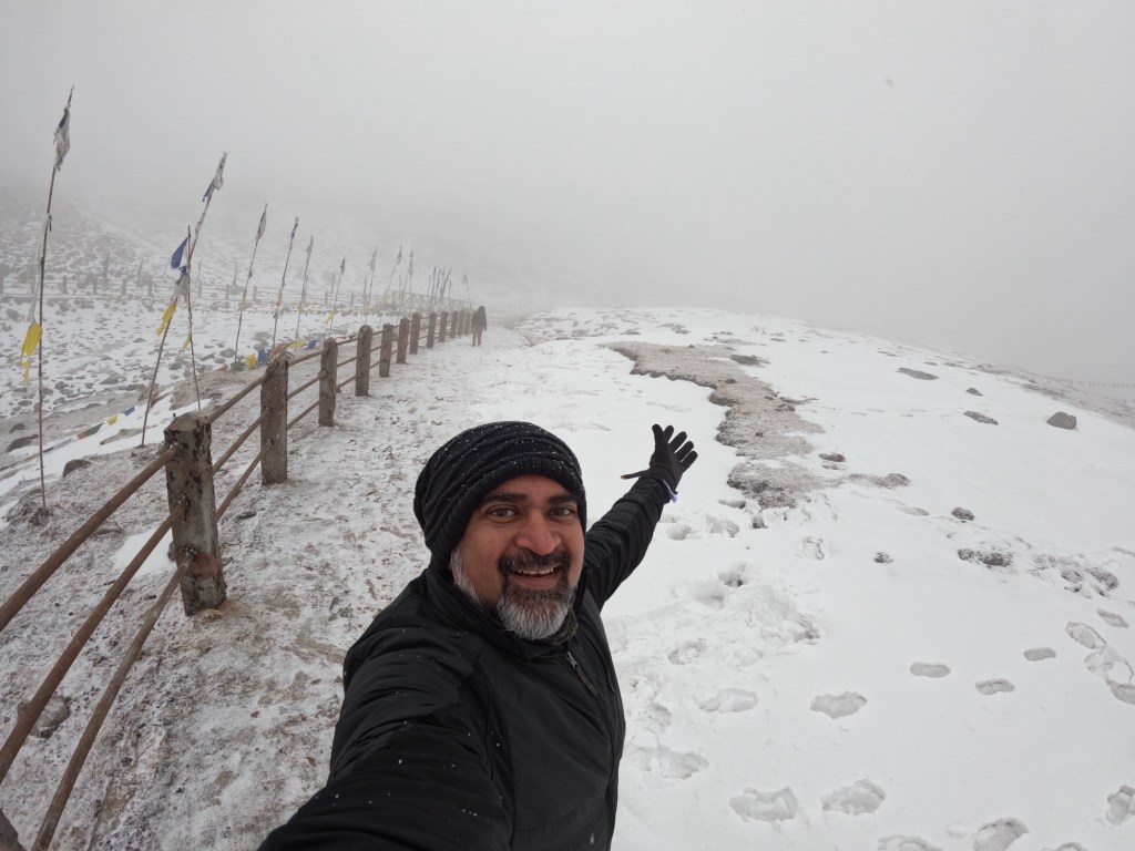 Luck was on our side. The remnants of a recent snowstorm had transformed the road to Sela Pass into a winter wonderland, an enchanting white expanse that heightened our anticipation. As we neared the pass, fresh snowfall began to dust our surroundings, signaling another shift in weather but only adding to our excitement.