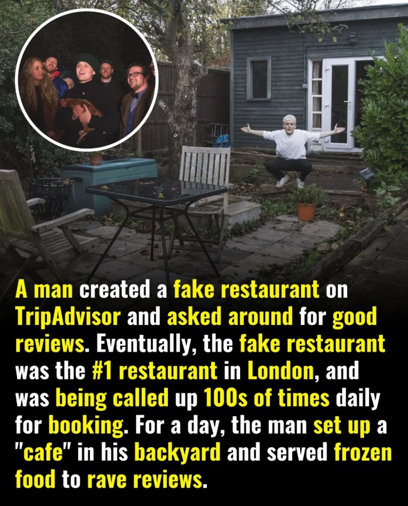 A man created a fake restaurant on TripAdvisor. He collected glowing reviews. It climbed to become the #1 restaurant in its city.